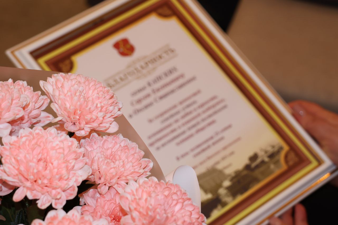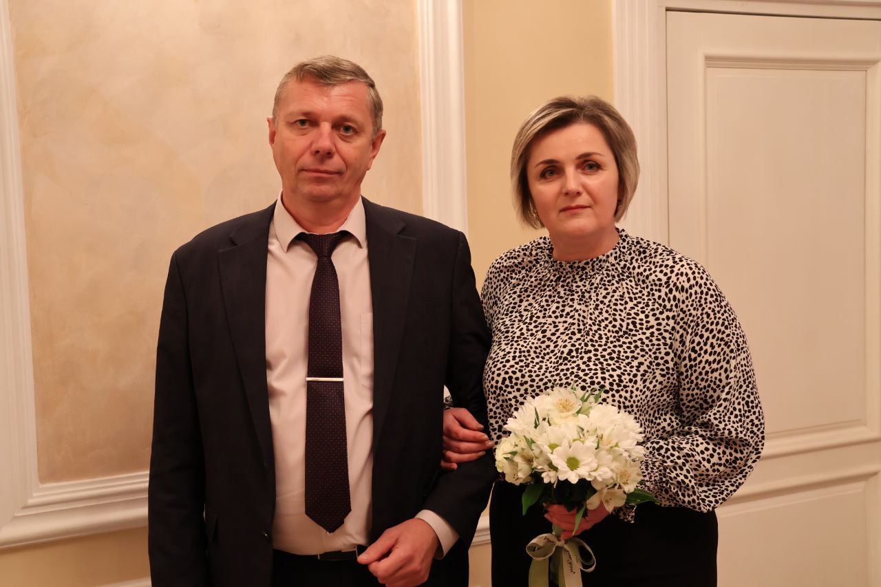 Поздравления юбилярам прозвучали от начальника отдела ЗАГС Зинаиды Ляховец. Она вручила супругам благодарность за преданность семейным ценностям и подчеркнула важность их примера для молодого поколения.