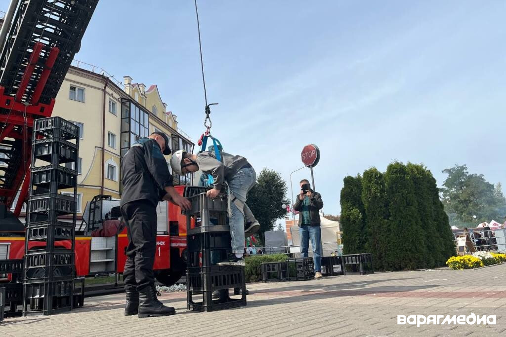 Так, например, сотрудники Пинского ГРОЧС организовали конкурс, где участники с помощью ящиков поднимаются как можно выше.