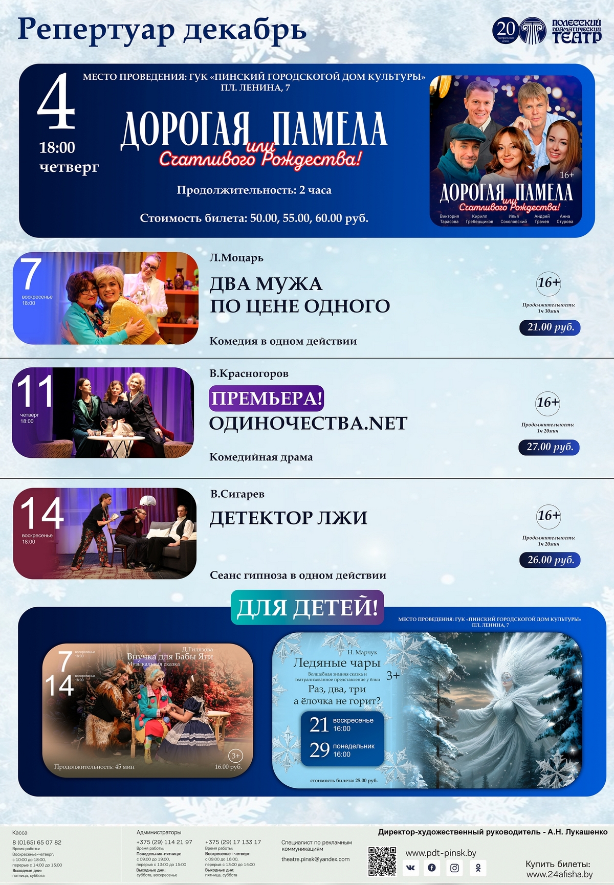 Расписание театральных мероприятий в Пинске на декабрь 2025 года - гастрольные, взрослые и детские спектакли.