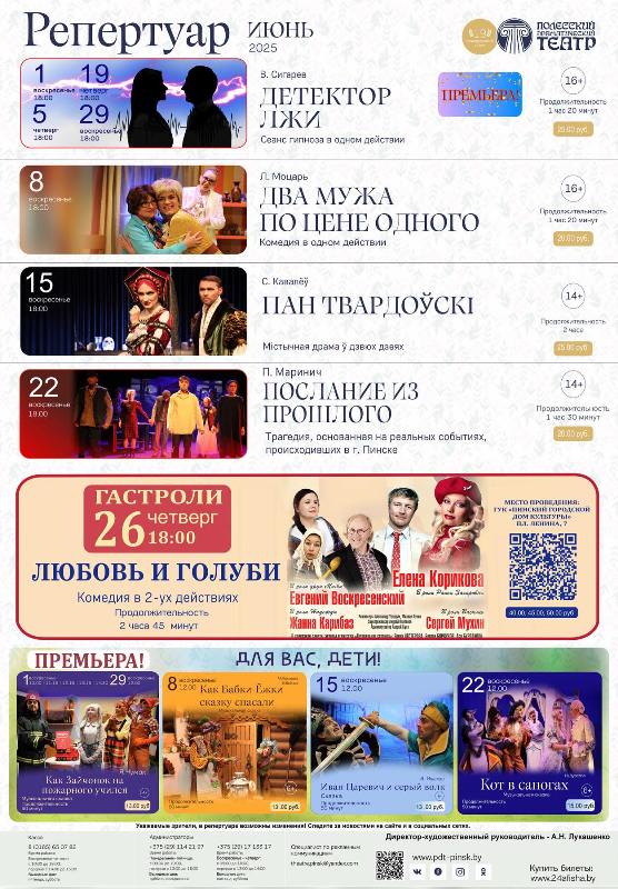 Афиша Полесского драмтеатра на июнь 2025 года