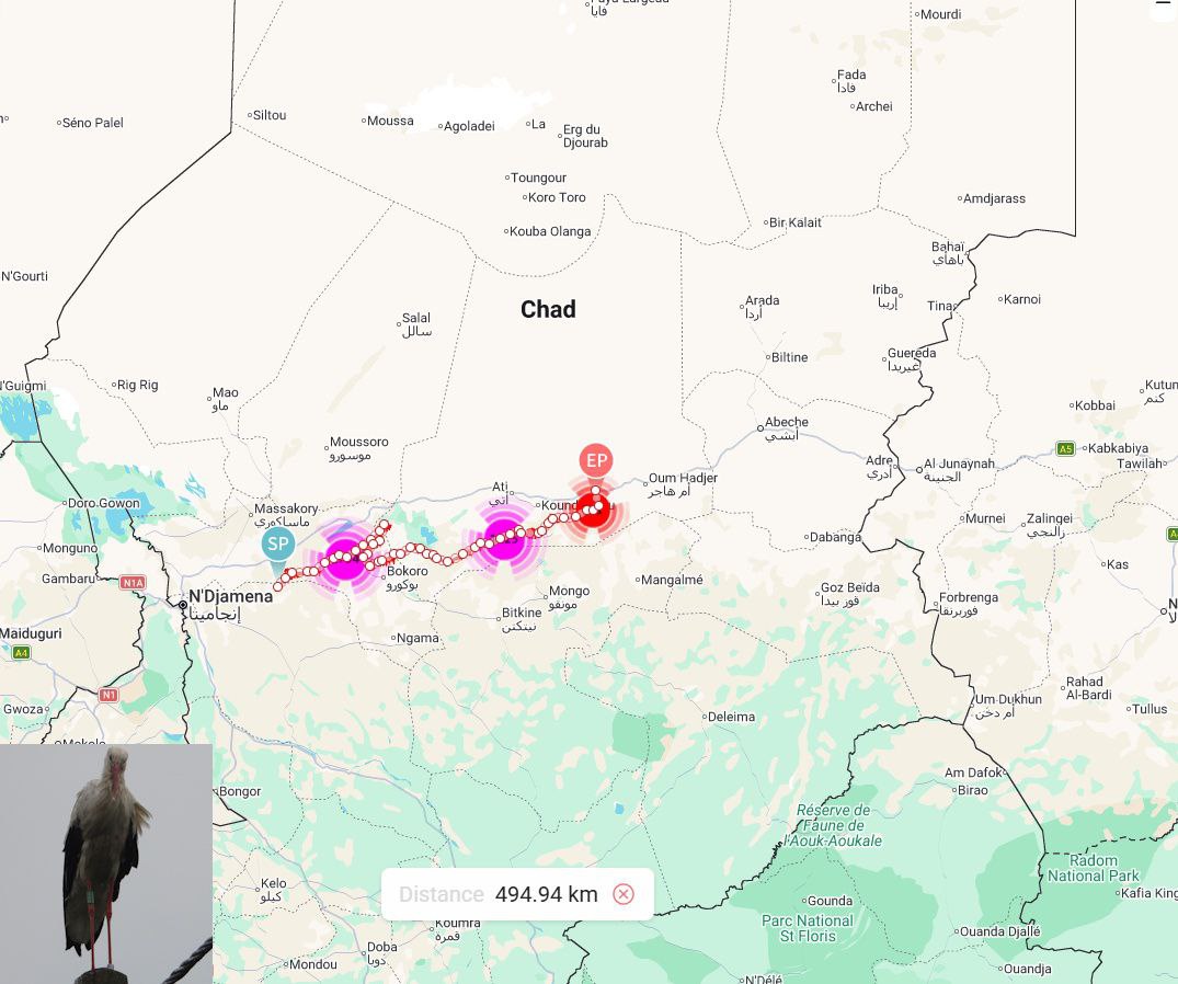 В центре внимания ученых оказался белый аист, которого назвали Второй. Его датчик зафиксировал старт путешествия несколько дней назад. Параллельно с белыми собратьями в путь обычно отправляются и взрослые черные аисты. Эти птицы ведут более скрытный образ жизни, но их графики перелетов часто совпадают.
