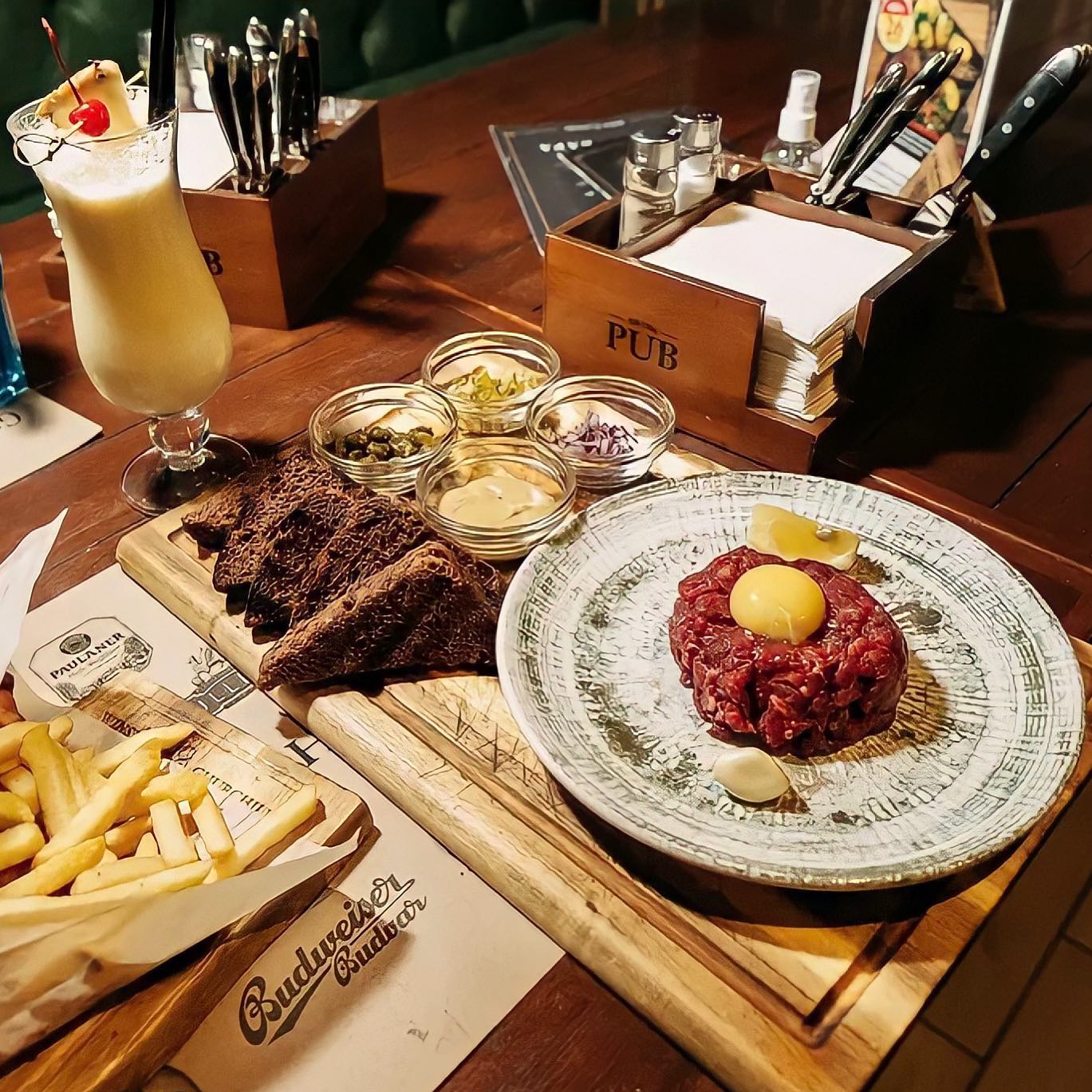 Меню паба порадует даже самых взыскательных гурманов. Попробуйте аппетитные драники, которые просто невозможно описать словами — их вкус нужно ощутить! Кроме того, паб предлагает отличные стейки и разнообразное пиво, которое станет отличным дополнением к вашему ужину. Меню в пабе — как дополнение атмосферы, а еда здесь подается исключительно на высшем уровне.