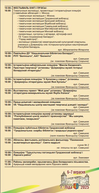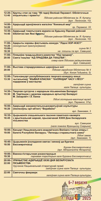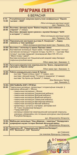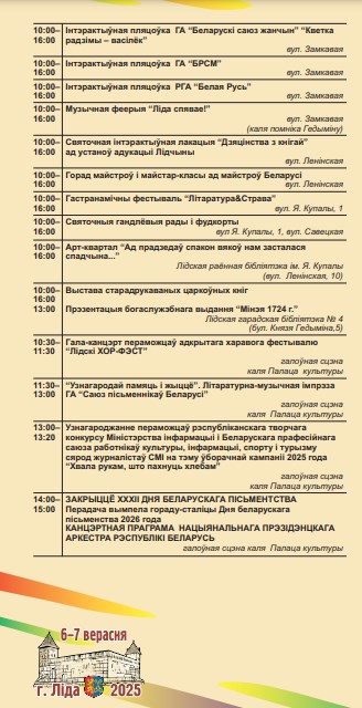 Также в Лиде в эти дни состоится республиканская научно-практическая конференция «Лидские чтения-2025», фестиваль книги и прессы, торжественные церемонии награждения победителей республиканских конкурсов на лучший поэтический сборник и среди журналистов на тему уборочной кампании.