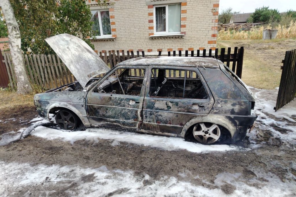 Первый инцидент произошёл 11 сентября в 14:06 в деревне Стытычево. Загорелся легковой автомобиль. По прибытии пожарных расчётов транспортное средство было полностью охвачено огнём. В результате пожара автомобиль уничтожен. Причины возгорания устанавливаются.