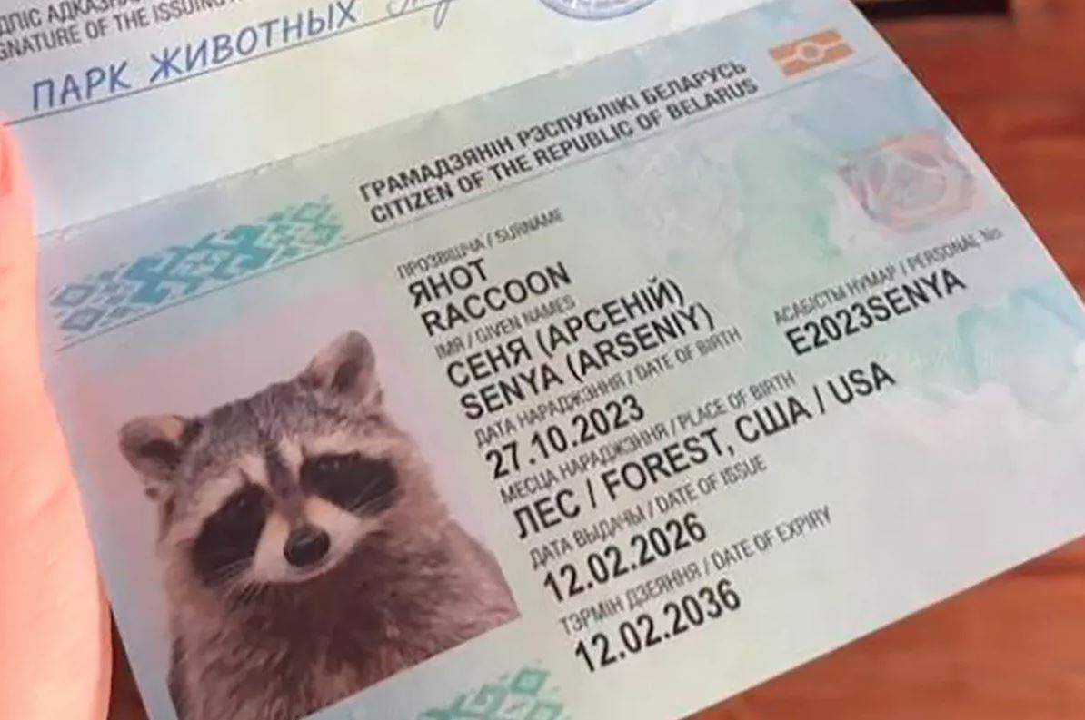 Американский енот по кличке Сеня, который стал известным после случайного путешествия в Беларусь внутри контейнера с автомобилями, официально получил статус местного жителя. В Барановичском парке животных «Диприз» зверьку выдали ветеринарный паспорт белорусского образца. Документ, действительный до 2036 года, подтверждает, что енот родился в лесах США в октябре 2023 года.