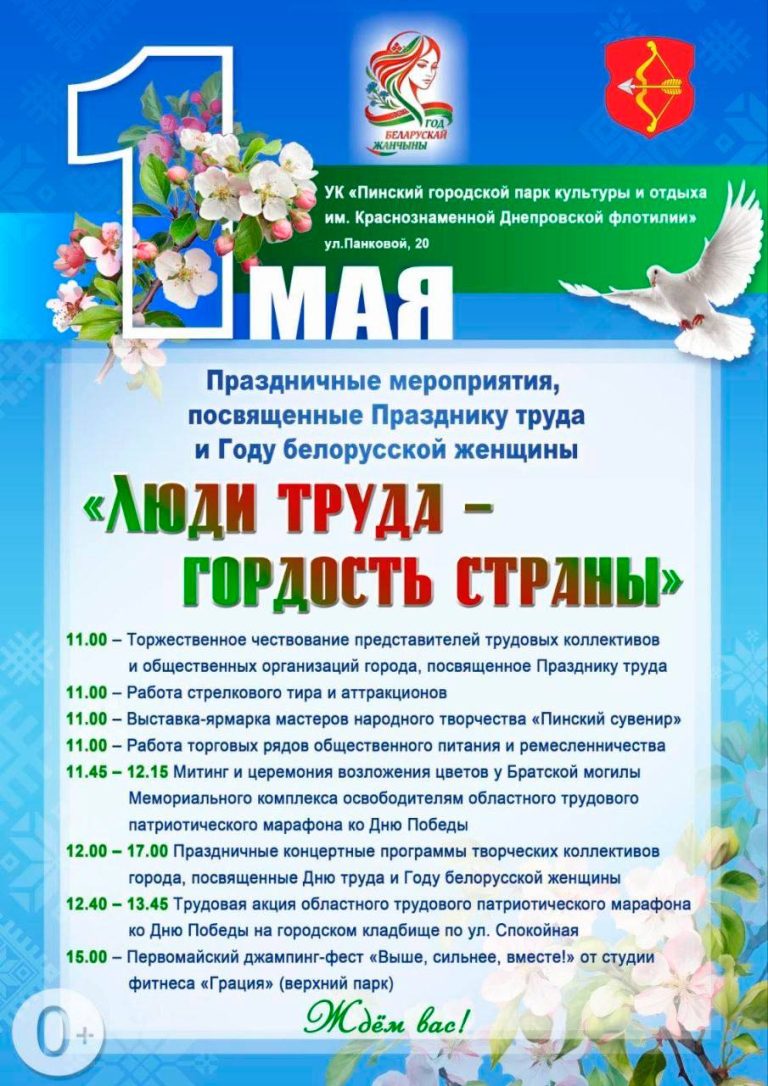 В Пинске 1 мая пройдут торжественные мероприятия, посвященные Празднику труда и Году белорусской женщины.