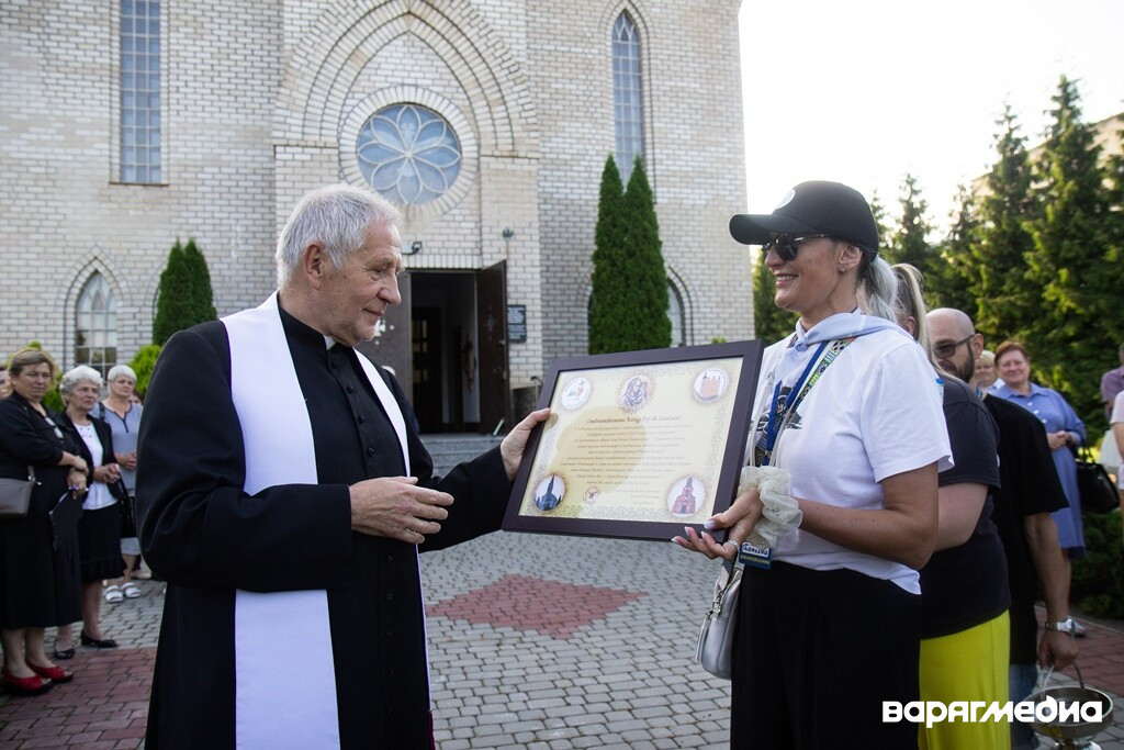 Потым ўсе разам зайшлі ў санктуарый, каб памаліцца да Маці Божай, падзякаваць ёй за гэты шлях і час разам, а таксама скласці ўсе свае просьбы і падзякі перад яе Цудатворным абразом.
