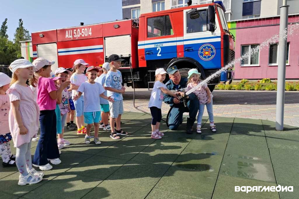 Дети смогли примерить каску пожарного, задать вопросы и поучаствовать в практической части — подаче воды из пожарного ствола. Это стало ярким завершением встречи и позволило малышам почувствовать себя настоящими спасателями.
