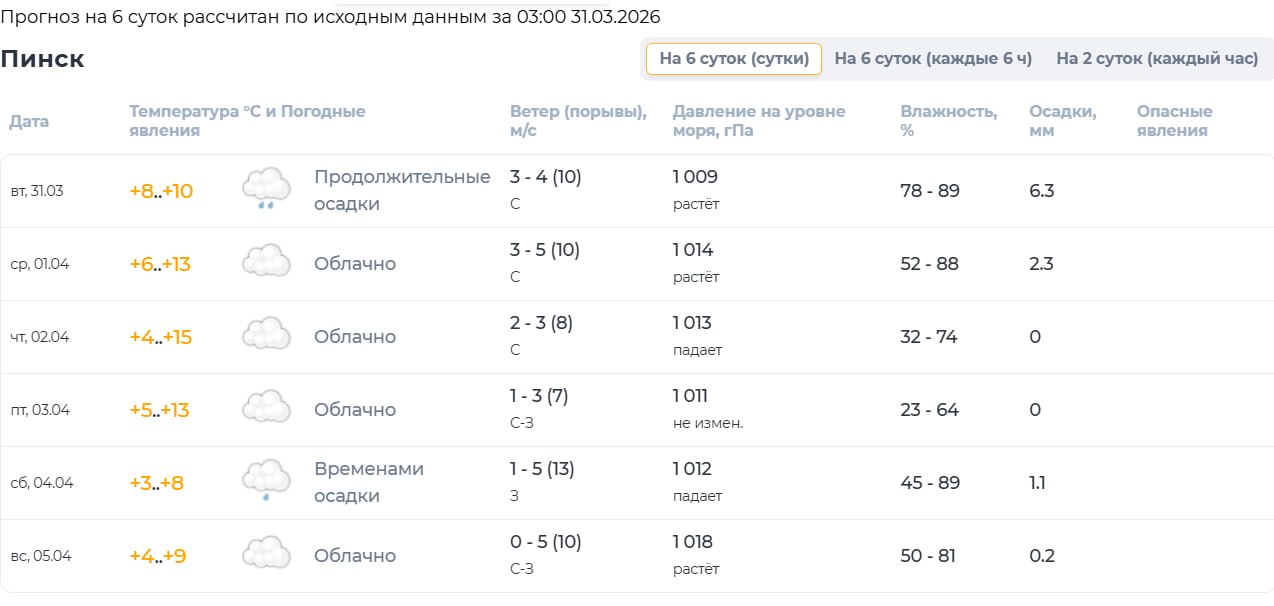 Вчера 31 марта, Пинск заливали дожди, а столбик термометра замер на отметке +8...+10°C. И хотя уже сегодня, и завтра, в четверг (1-2 апреля) солнце попытается прогреть город до +13...+15°C, радость будет недолгой. Уже к пятнице, 3 апреля, небо затянет тучами, а суббота встретит горожан резким похолоданием до +3..+8°C и осадками. В воскресенье теплее +9°C тоже не станет. Такие «качели» - веский повод не трогать рубильник прямо сейчас, чтобы к выходным жилье не превратилось в ледник.