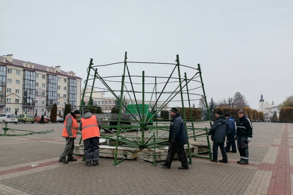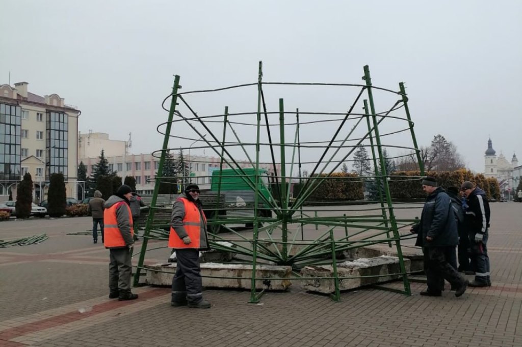 В Пинске стартовала подготовка к новогодним праздникам. Сегодня, т.е. 25 ноября, на центральной площади имени Ленина коммунальные службы приступили к монтажу главной городской ёлки и праздничных композиций.