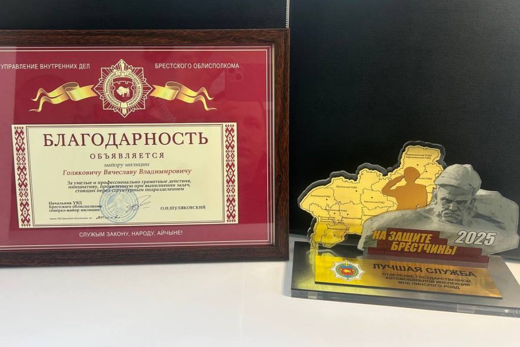 По результатам оперативной работы за 2025 год Госавтоинспекция Пинского РОВД заняла первое место в региональном рейтинге. Подразделение добилось беспрецедентного снижения аварийности, зафиксировав лучшие показатели безопасности за последние десятилетия.