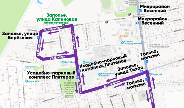 Помимо этого, на маршруте № 8 вводится новый остановочный пункт: «Заполье, ул. Калиновая», расположенный в д. Заполье.