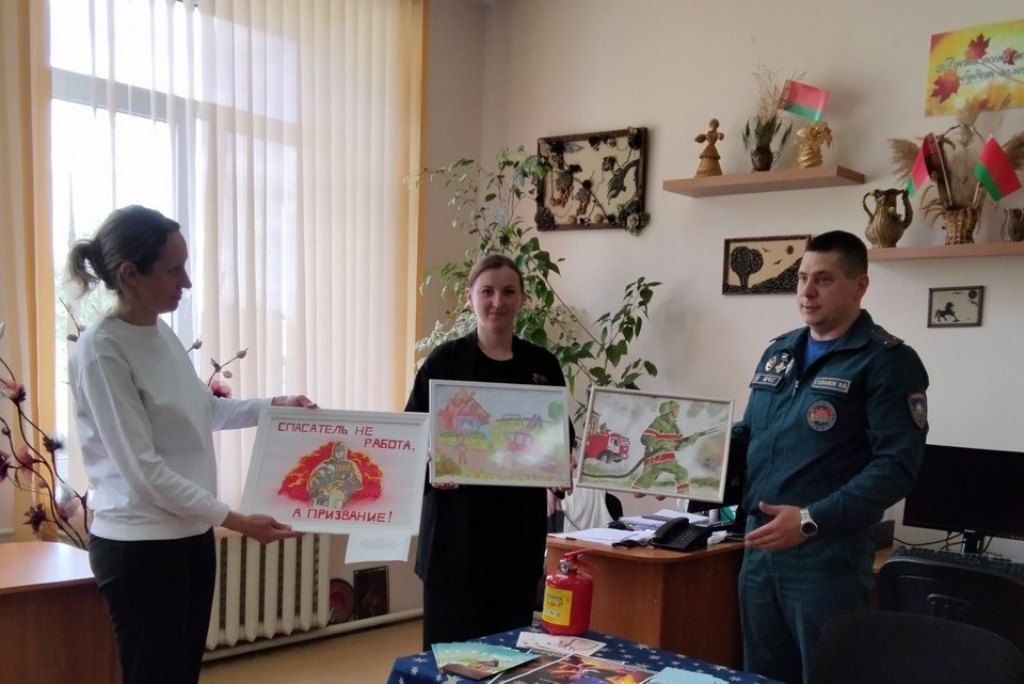 Дополнением к мероприятию стала выставка детских рисунков, посвящённых работе спасателей. Работы были переданы в дар центру и вызвали живой интерес у посетителей.