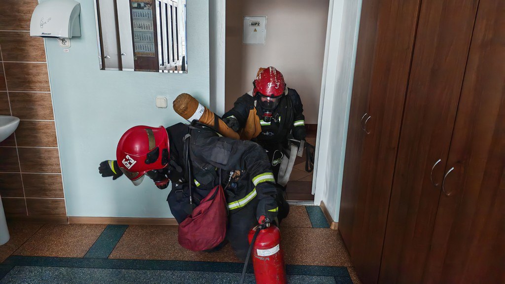 Сценарий предусматривал возникновение пожара в одном из кабинетов на втором этаже административно-жилого корпуса. Персонал учреждения, обнаружив «возгорание», оперативно сообщил о происшествии по номеру 101 и приступил к эвакуации пациентов.