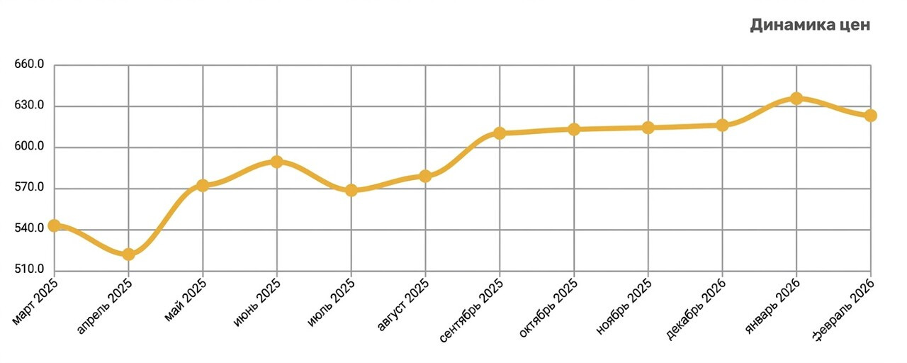 - 1-комнатные: стабильный рост. Метр стоит 646$ (+12$ за месяц). Год назад (март 2025) цена была 594$.