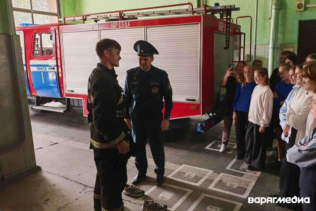В Пинске прошла профориентационная и обучающая экскурсия для учащихся Берёзовичской средней школы. 13 сентября школьники посетили пожарную аварийно-спасательную часть №1 Пинского горрайотдела по чрезвычайным ситуациям.