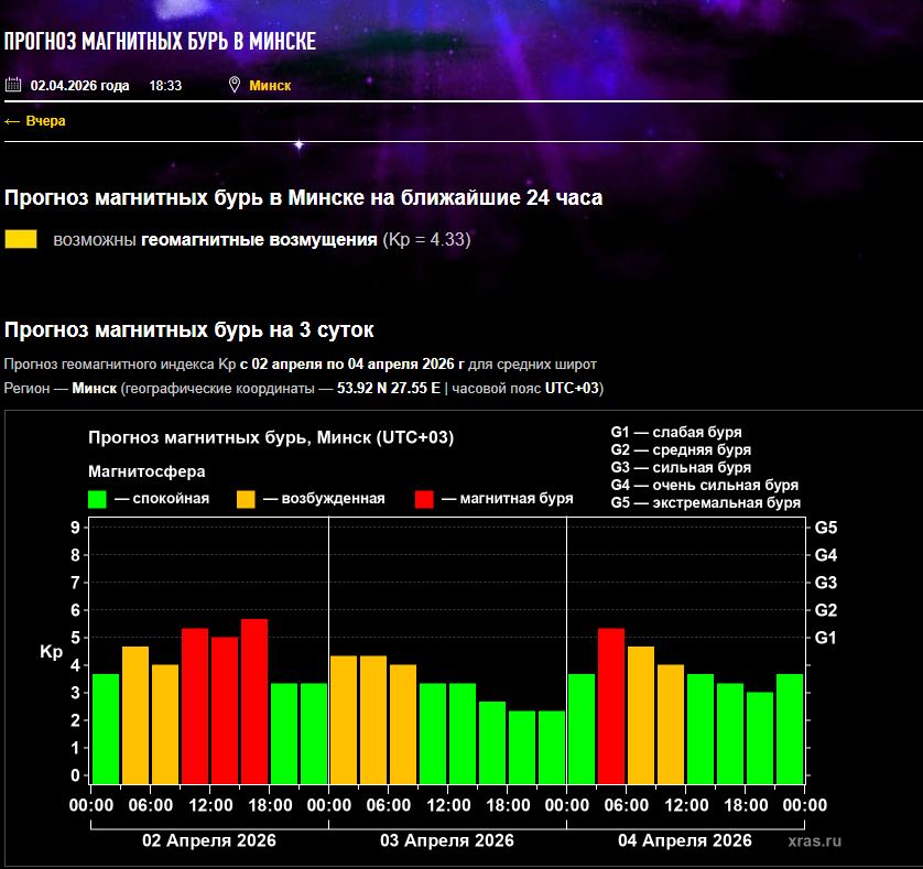 Прогноз магнитных бурь в Беларуси (xras.ru)