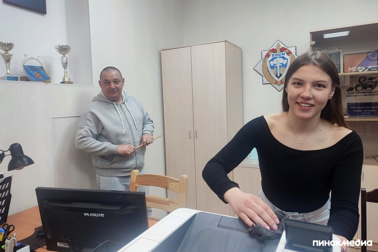 Рабочий процесс охватил внутренние помещения ГОВД и прилегающие территории. Участники акции провели текущий ремонт кабинетов: обновили отделку стен, заменили обои и выполнили малярные работы. Личный пример молодежи показал начальник Пинского ГОВД Игорь Ерохин.