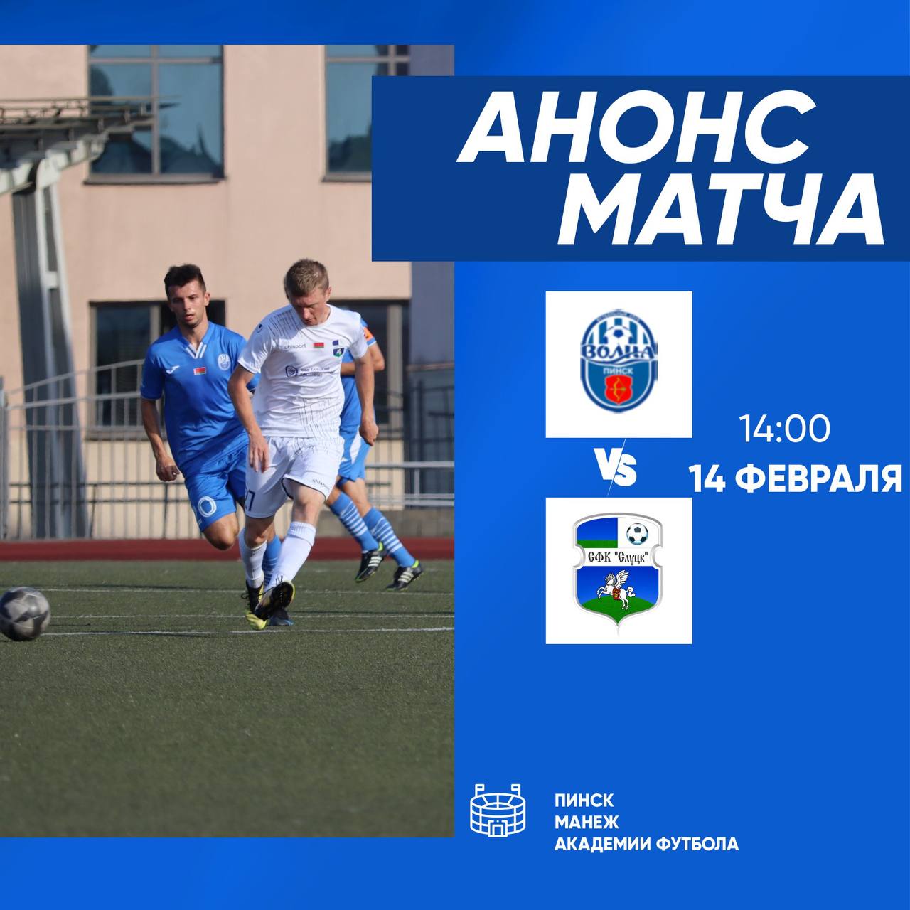 Товарищеский матч «Волна -Пинск» - «Слуцк» состоится 14 февраля в Пинске