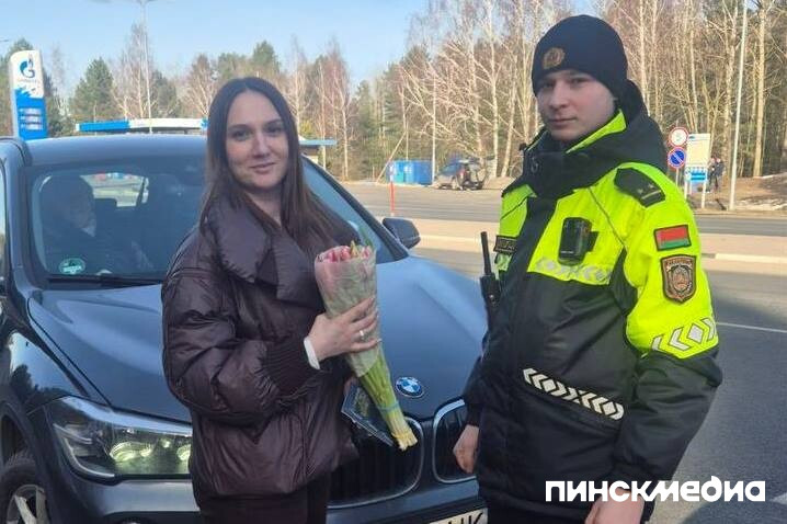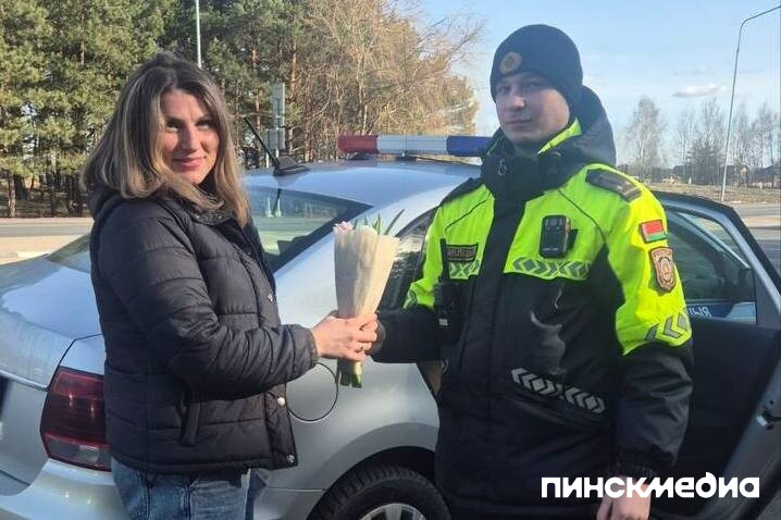 В Пинском районе прошла весенняя акция Госавтоинспекции, приуроченная к Международному женскому дню. Накануне и непосредственно 8 марта сотрудники ОГАИ Пинского РОВД останавливали автомобили под управлением женщин, чтобы поздравить их с праздником и напомнить о правилах дорожной безопасности.