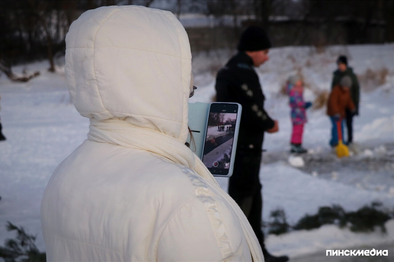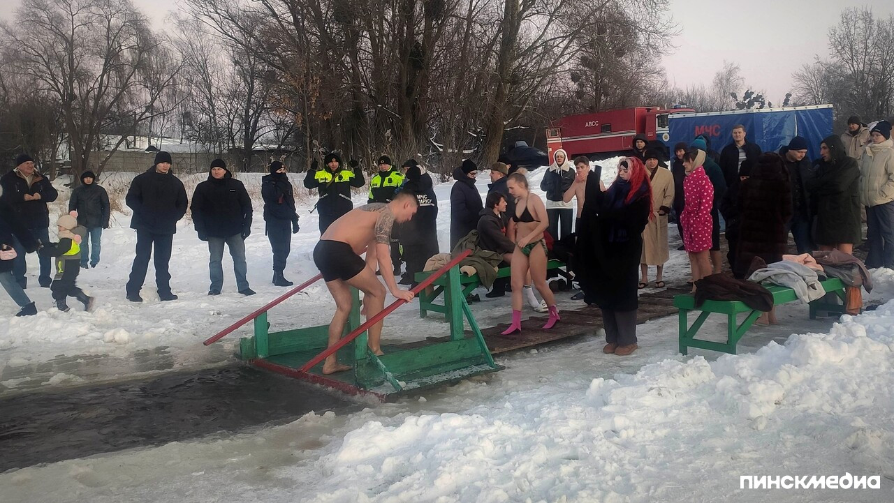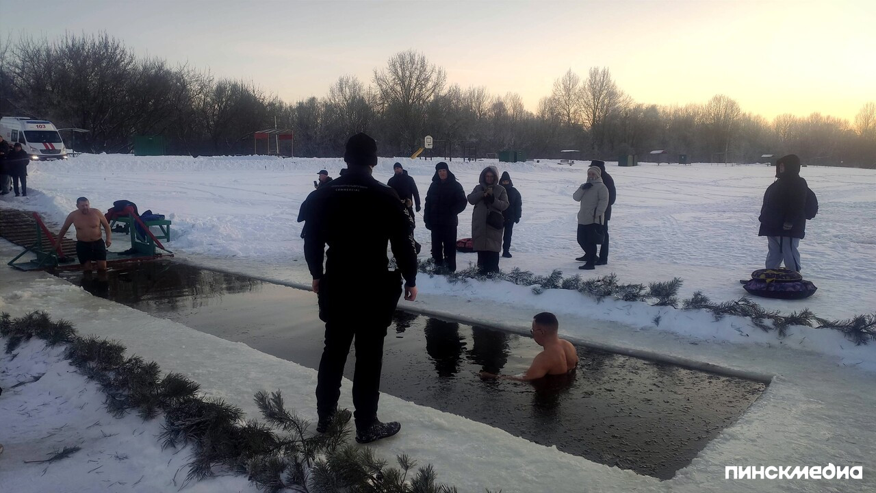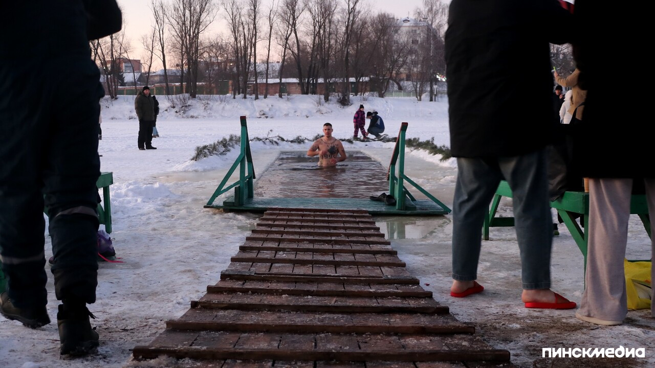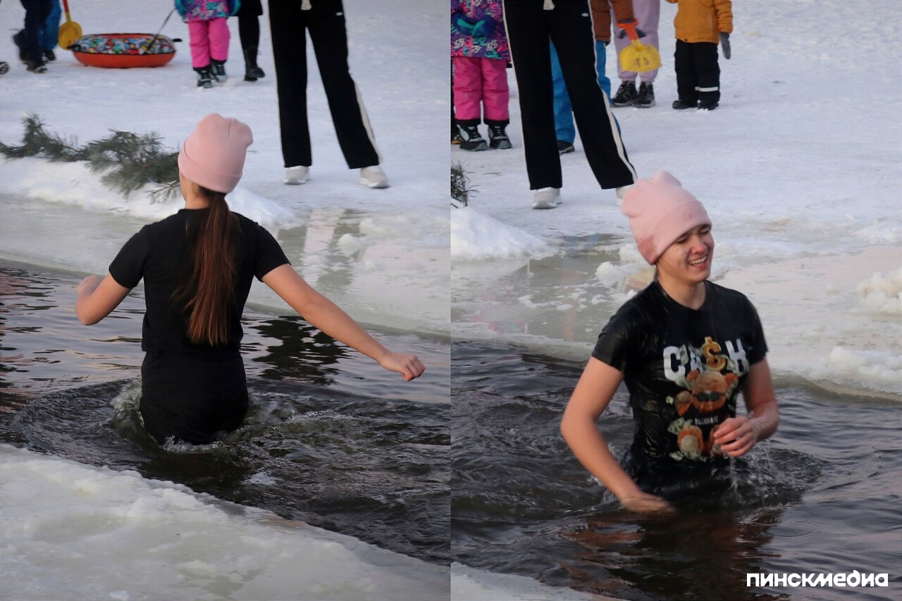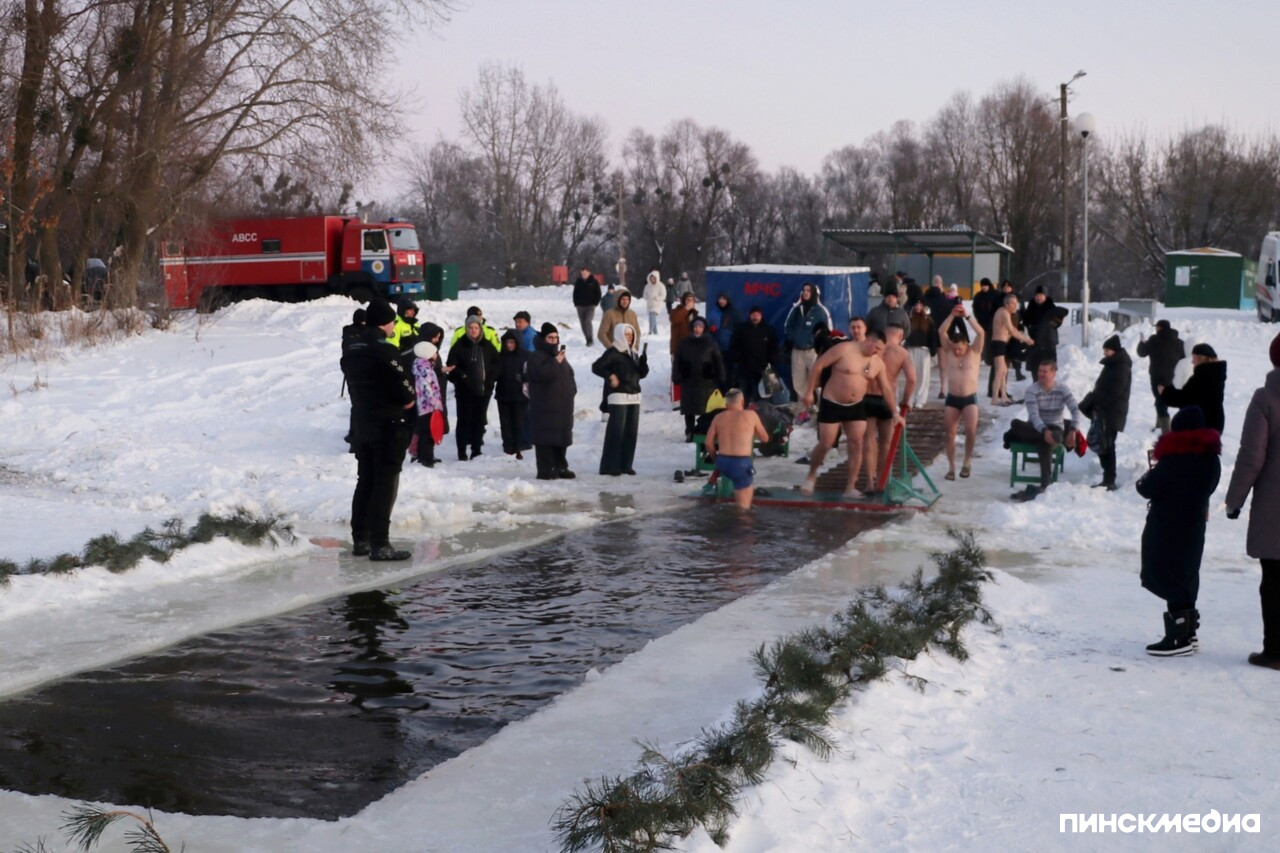 Прорубь для пинчан организовали на городском пляже №2. Безопасность присутствующих обеспечивали спасатели, медики и милиция.