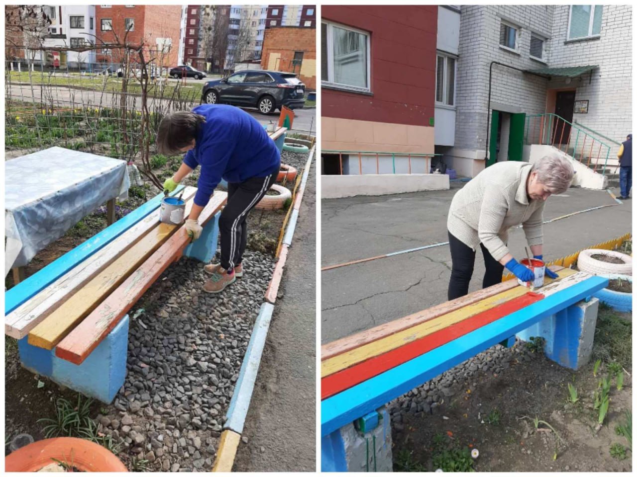 Вместе с коммунальными службами на облагораживание территории вышли и жильцы многоквартирных домов. Они вооружились кисточками и инвентарем, чтобы покрасить лавочки, ограждения и почистить площадки. Теперь эти дворы выглядят по-весеннему свежо и ярко.