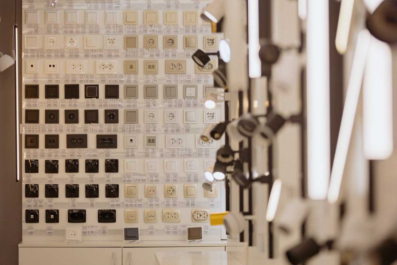 - Электроустановочные изделия: Полные линейки розеток и выключателей от ведущих брендов (IEK, Era, Ambrella и др.) в различных стилях и цветах, которые идеально дополнят любой дизайн.