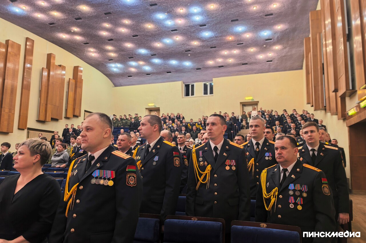 В рамках торжественного собрания состоялась церемония награждения лучших сотрудников. Поздравить правоохранителей прибыли почетные гости: прокурор Пинского района Дмитрий Позняк, представитель райисполкома Дмитрий Полховский и управляющий делами горисполкома Игорь Берестень.