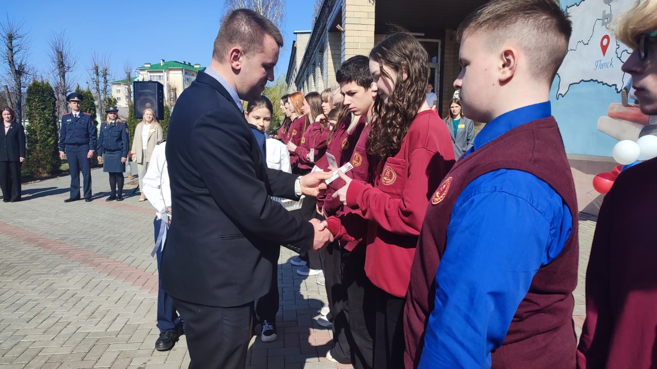 Церемония прошла в ГУО «СШ №12 г. Пинска» и собрала почетных гостей, включая первого секретаря Пинского ГК ОО «БРСМ» Виктора Масляка, главного специалиста управления по образованию Пинского горисполкома Елену Колышеву и сотрудников Пинского ГОВД, которые активно участвуют в воспитании молодежи и реализации государственной молодежной политики.