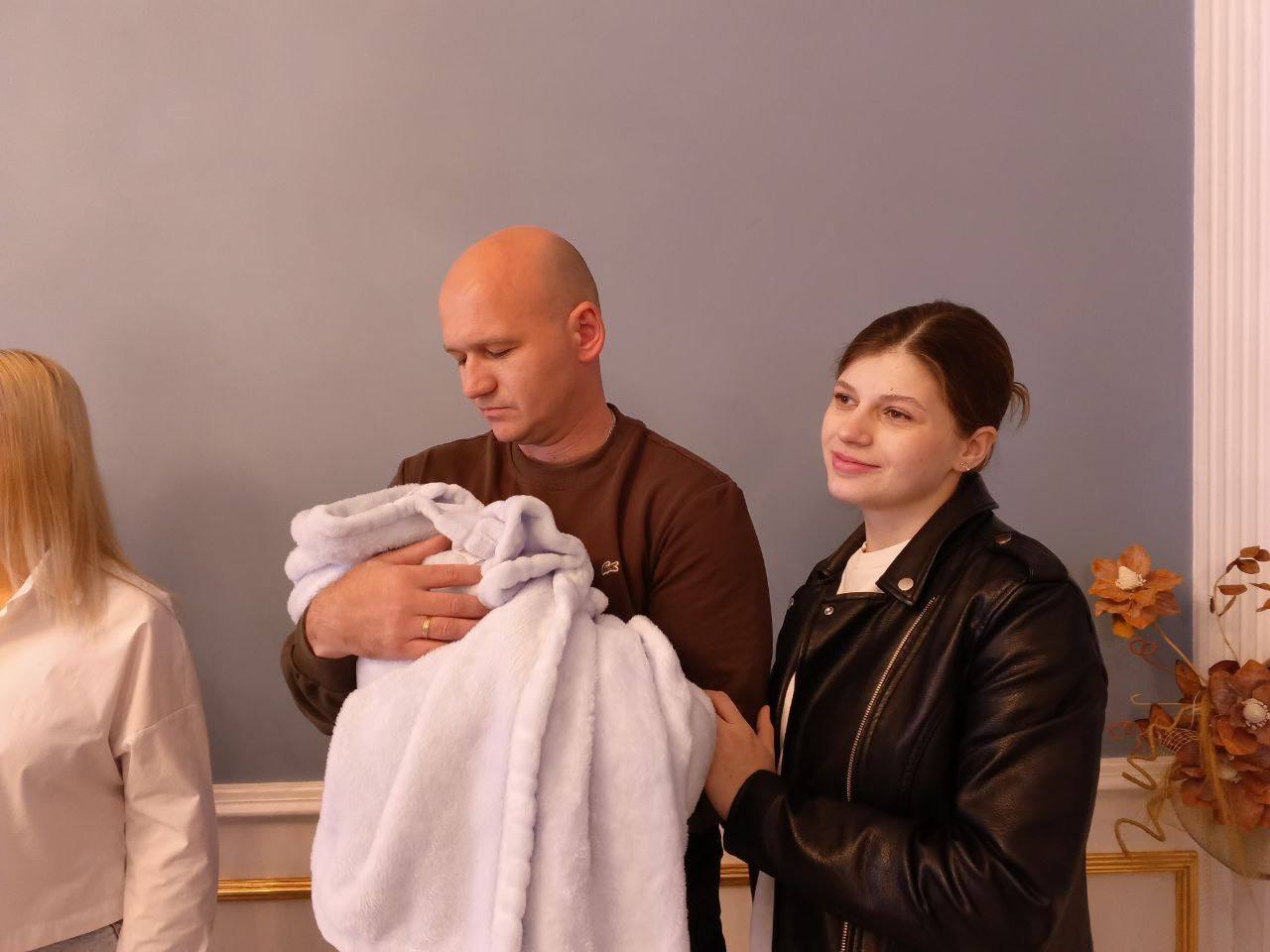 Сотрудники ЗАГСа поздравили семьи с этим радостным событием и вручили памятные подарки, символизирующие начало новой жизни для каждой из семей.
