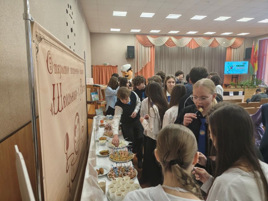ОАО «Школьник» организовало дегустацию блюд школьного питания. Инженер-технолог А.А. Мисковец рассказала о технологии их приготовления и оформления, важности для здоровья детей. Среди учащихся был проведен анкетный опрос, результаты которого в дальнейшем будут учитываться при составлении школьного рациона.