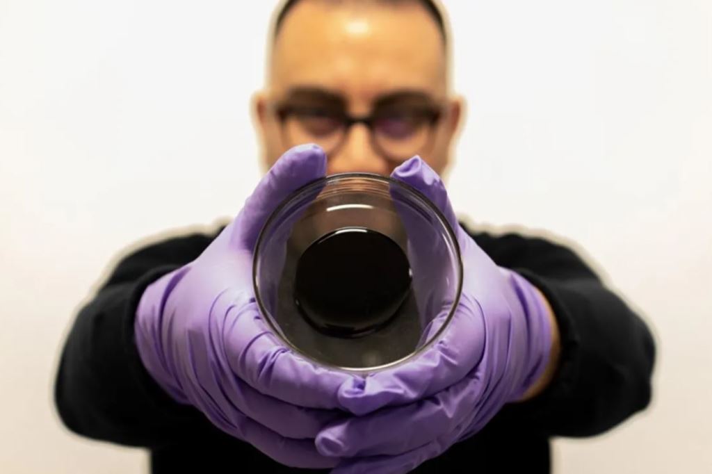 В ходе лабораторных экспериментов было показано, что самовосстанавливающийся битум - липкий черный материал в составе асфальтовой смеси, который доктор Хосе Норамбуэна—Контрерас (Jose Norambuena-Contreras) показывает на фотографии выше, — полностью залечивает микротрещины на поверхности менее чем за час.