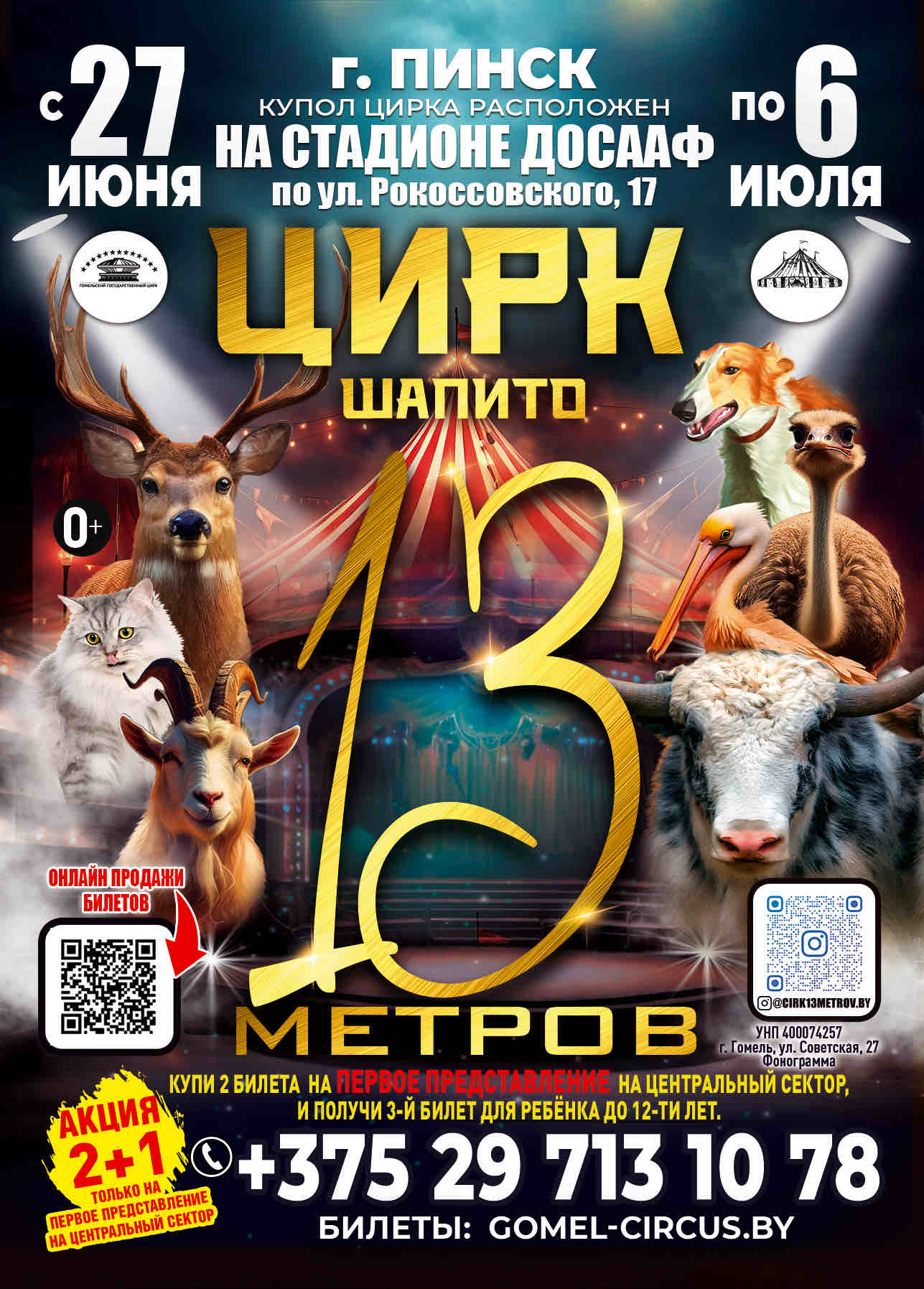 Лето-2025 в Пинске обещает быть по-настоящему жарким и зрелищным. Совсем скоро в нашем городе начнется настоящее цирковое приключение. С 27 июня по 6 июля стадион «ДОСААФ» станет местом, где оживают фантазии, где смелость и талант создают моменты, которые запоминаются навсегда.