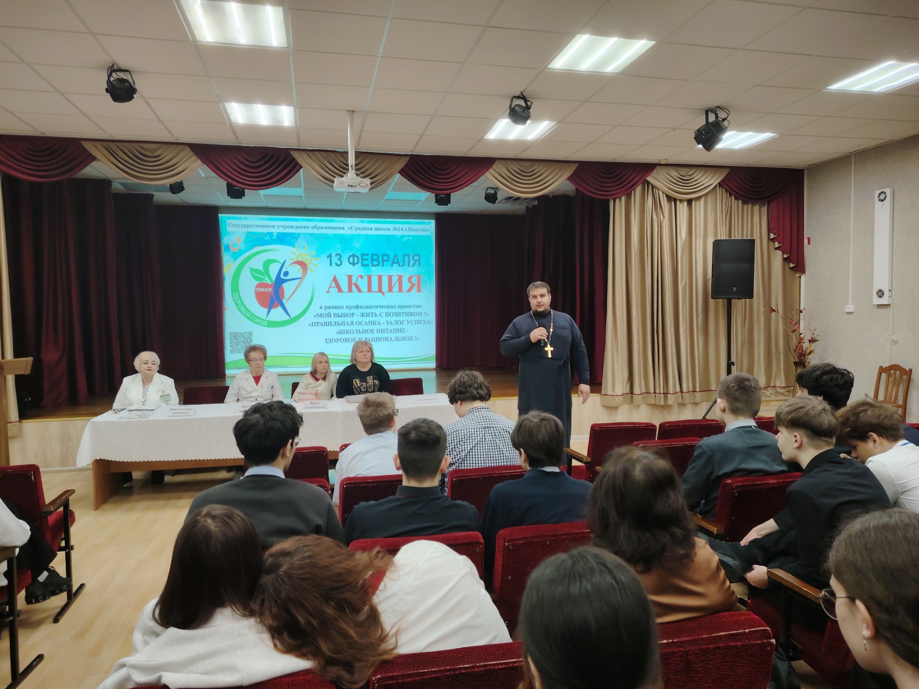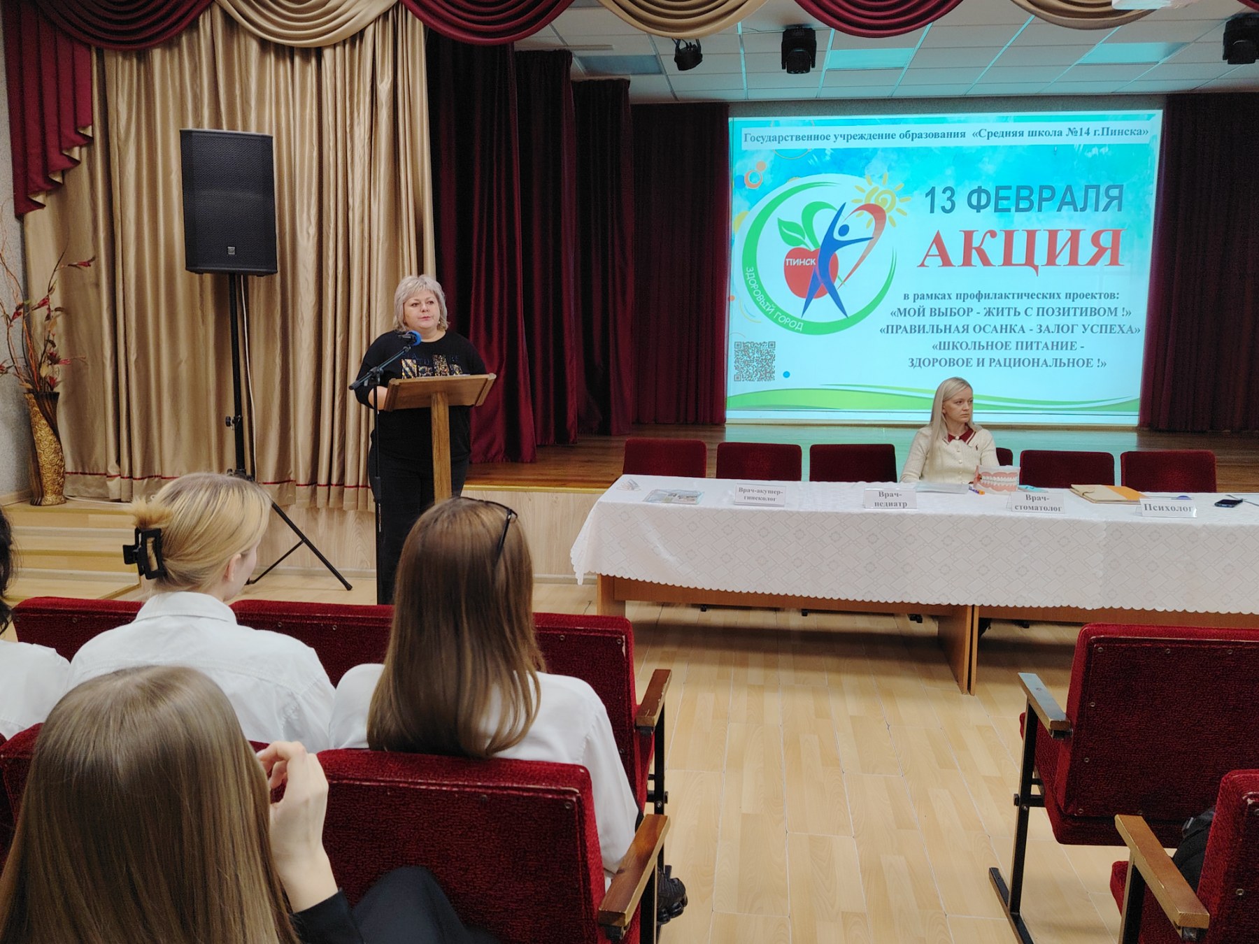 В Пинске продолжается активная работа в рамках проекта «Здоровый город». Очередная профилактическая акция состоялась 13 февраля в средней школе №14. Специалисты центра гигиены, учреждений здравоохранения, ОАО «Школьник» и Пинской епархии встретились с учащимися и педагогами, чтобы рассказать о том, как важен здоровый образ жизни в любом возрасте.
