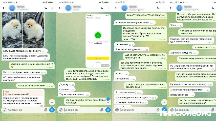 Жительница Пинска стала жертвой мошенников, пытаясь приобрести щенка через интернет. После внесения аванса продавец перестал выходить на связь.